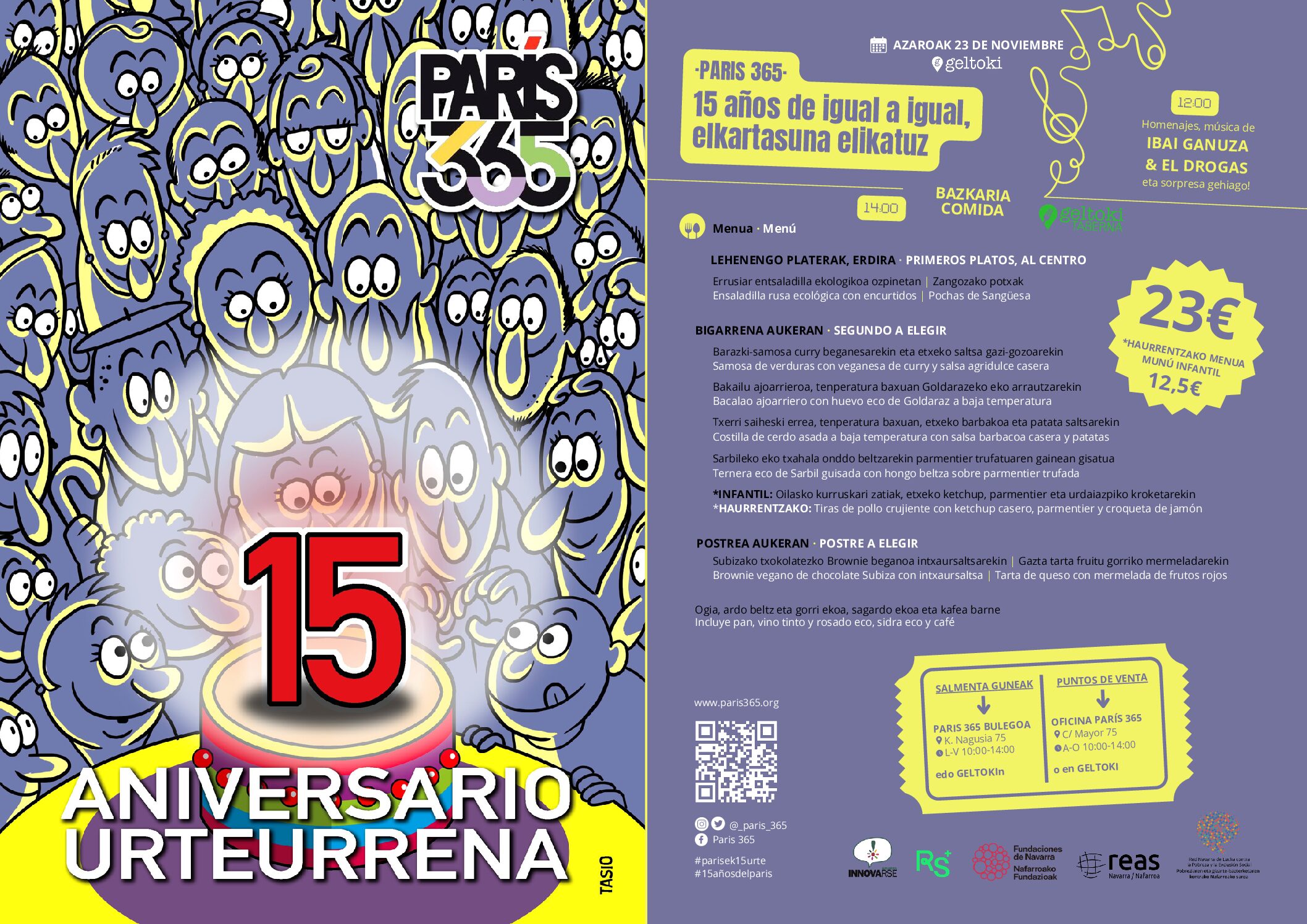 París 365 cumple 15 años de actividad y quiere celebrar su aniversario con una comida en Geltoki.