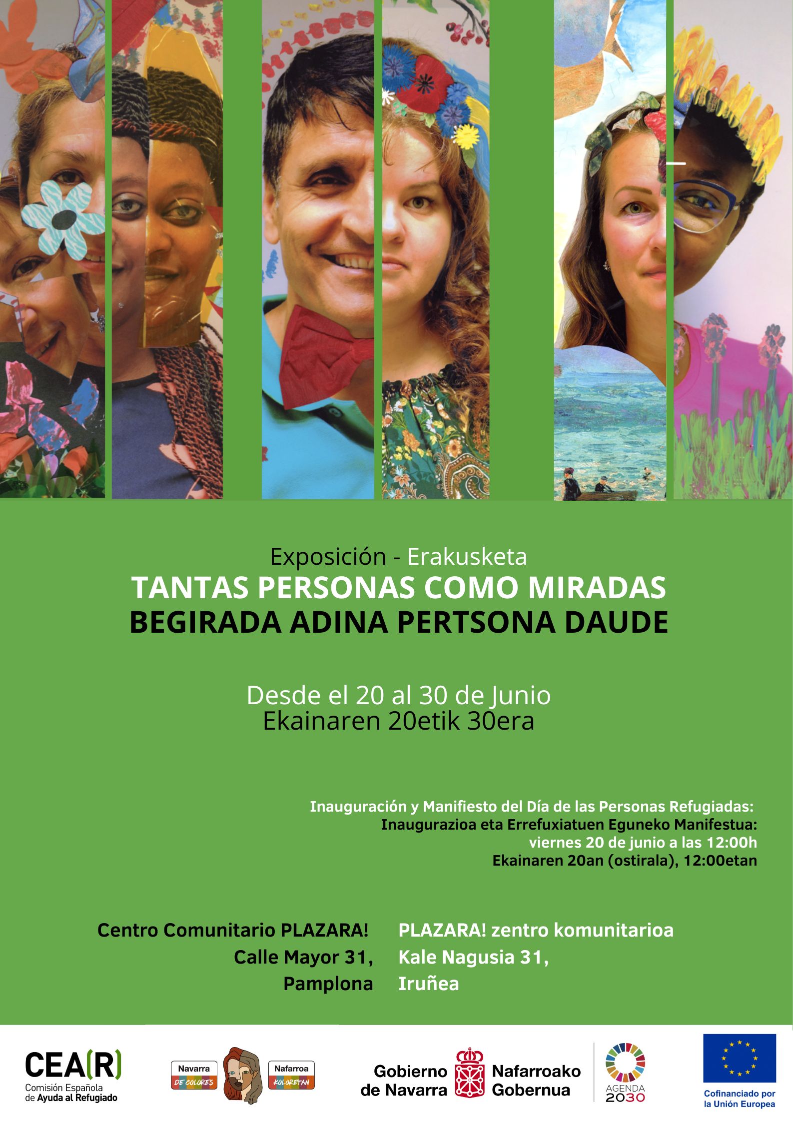 «Tantas personas como miradas» se inaugura el 20 de junio con motivo del Día Internacional de las personas refugiadas. El mismo día a las 12:00 horas se leerá un manifiesto por el Día internacional en Plazara.