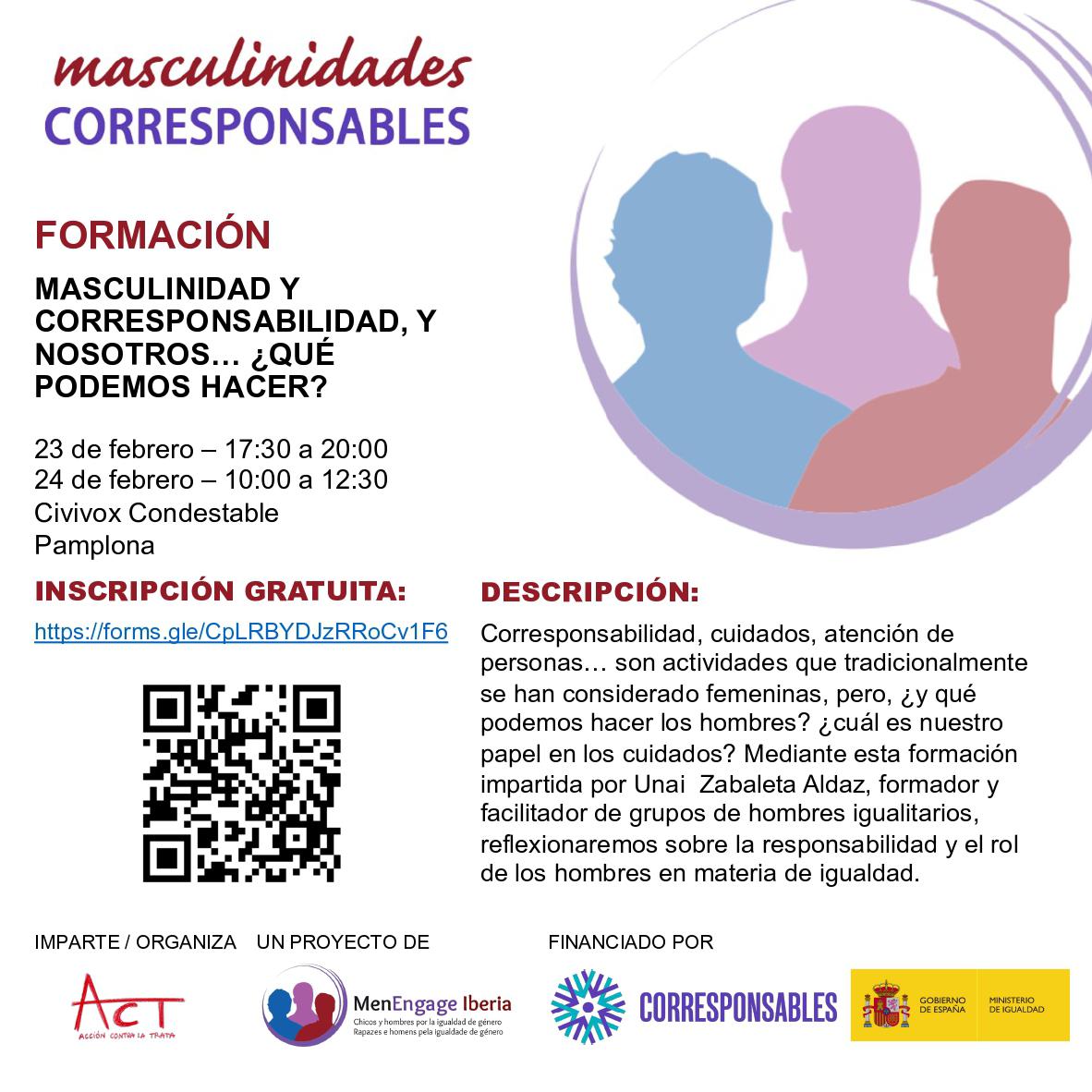 Acción Contra la Trata – ACT organiza una formación de dos días en masculinidades corresponsables abierta a todas las personas interesadas. Para que pueda participar la mayor cantidad de población posible se ofertan dos combos de fechas en febrero.