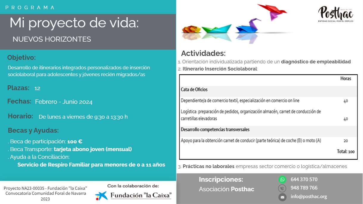 La Asociación Posthac, Entidad Social por el Empleo, presenta "Mi proyecto de vida: nuevos horizontes". El proyecto, […]