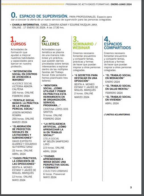Actividades formativas Colegio de Trabajo Social de Navarra