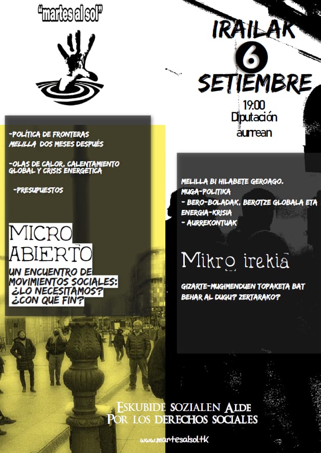 Luchas diversas en la Asamblea Concentración del primer martes de Septiembre eta M͓̽i͓̽k͓̽r͓̽o͓̽ ͓̽i͓̽r͓̽e͓̽k͓̽i͓̽a͓̽: Gizarte mugimenduen topaketa […]