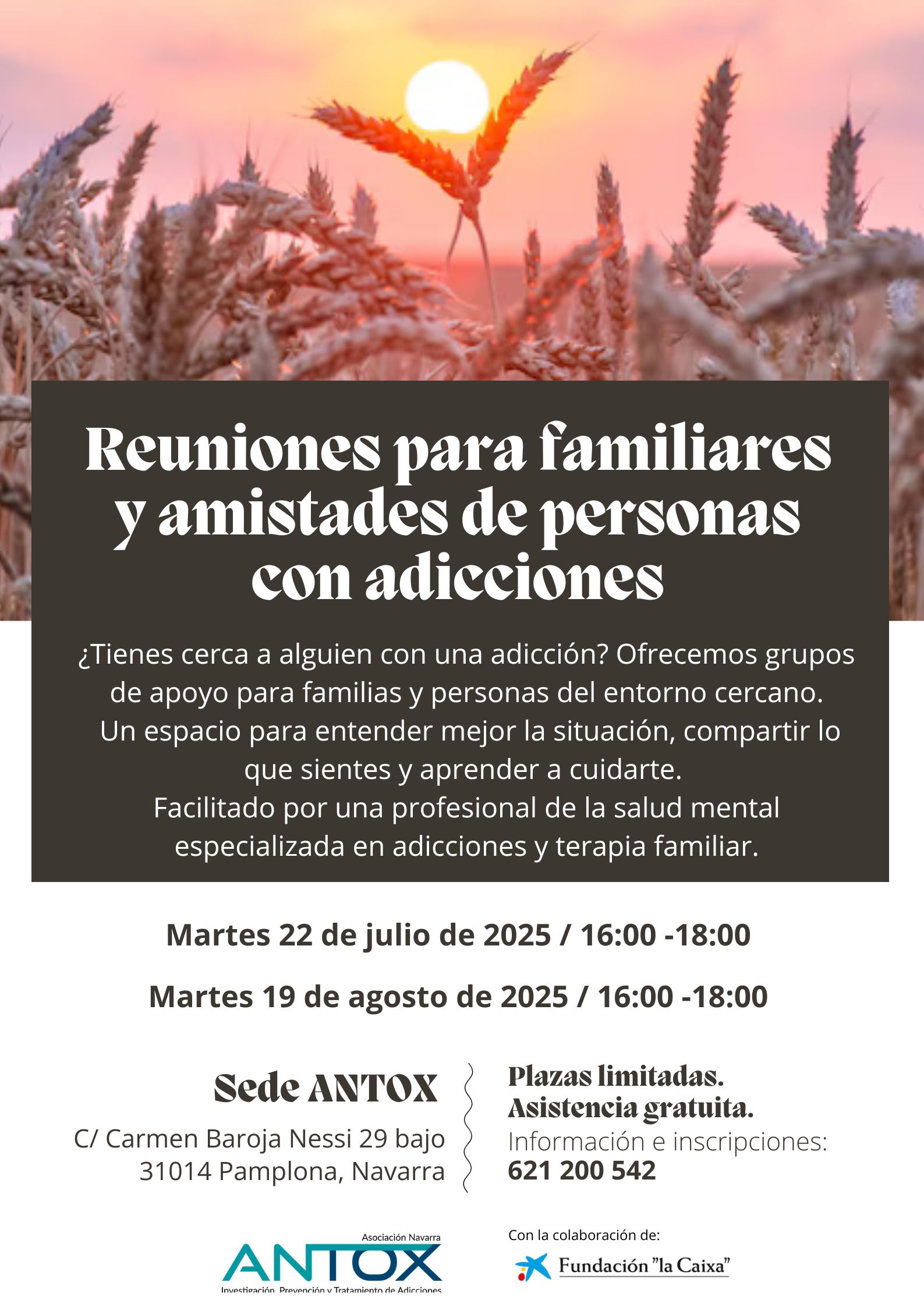 • Lugar: Sede Antox. C/Carmen Baroja Nessi 29 bajo. 31014 Pamplona.