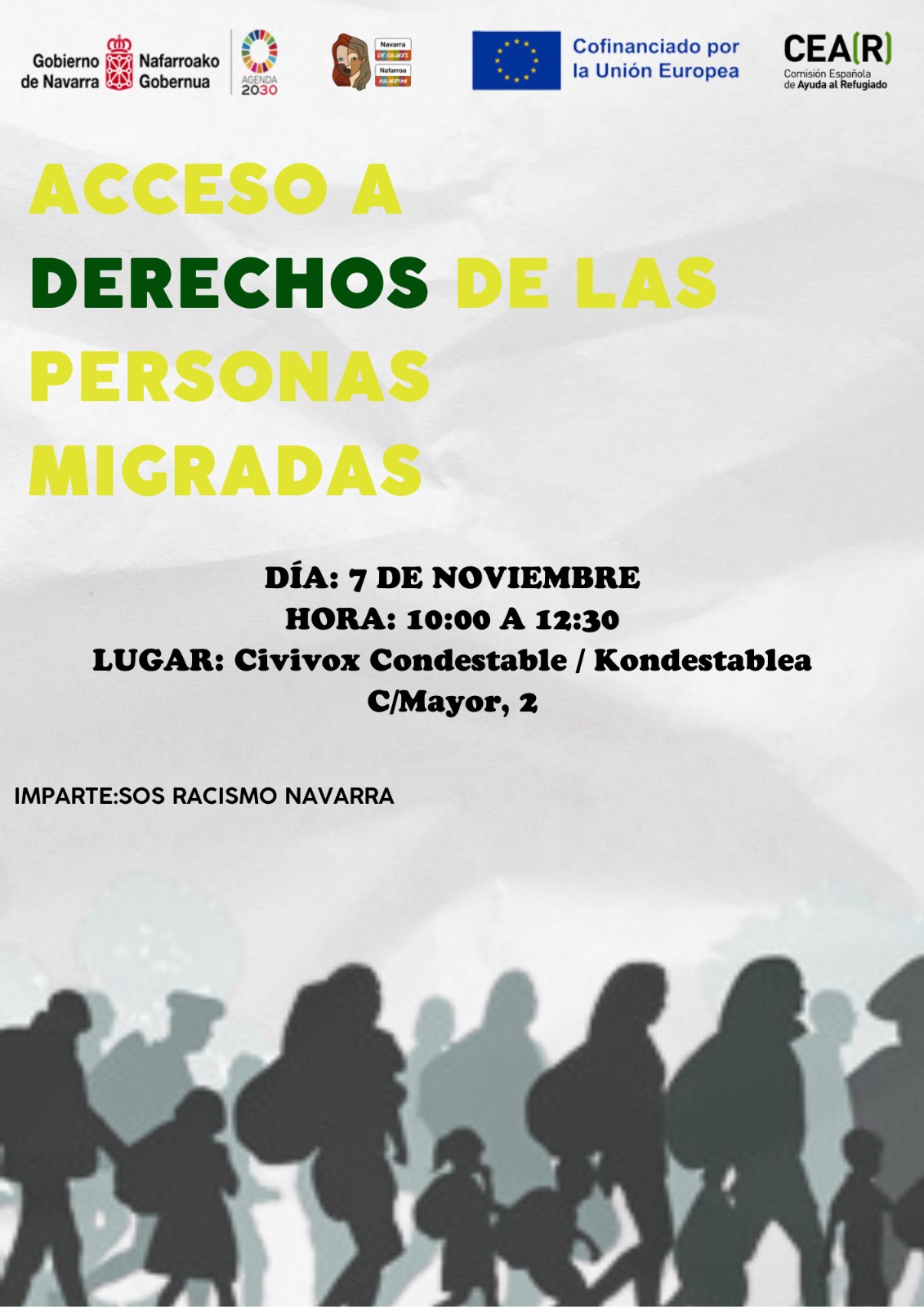 La Comisión Española de Ayuda al Refugiado (CEAR) ha organizado, en colaboración con SOS Racismo Navarra, un proyecto local sobre el acceso a derechos de las personas migradas.
